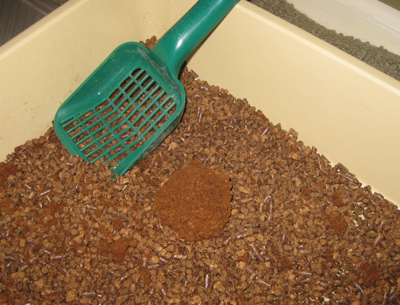 1. A pellet is not always a pellet. The pellets do break down somewhat with use, but not entirely as with Feline Pine.However, the loose litter, which has the consistency of dirt, can be tracked or stick to the bottom of the pan in a wet clump. Stirring the litter frequently can help reduce the formation of wet spots or balls that look a bit like chocolate truffles (see pic).