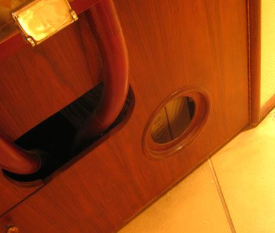 This kitty nook, designed by Frank Lloyd Wright, is currently being used for storage. I suppose the current occupants of the building aren’t really set up for cat keeping. After all, a roaming kitty can really mess with expensive art!