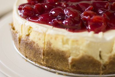 I’ve made a bunch of cheesecakes from scratch, but this year I decided to try a new recipe, and a new topping! I’ve never made a cherry topping before, but I’m amazed at how easy it was. I hated the idea of using canned cherries. Who thinks that tastes good?